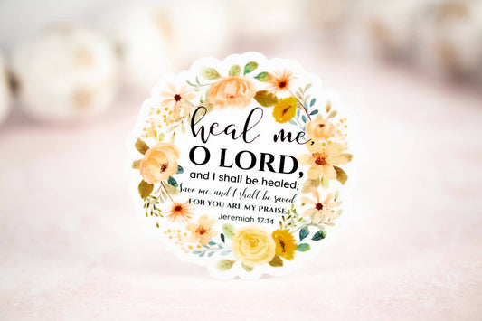 Heal Me O Lord, Christian Floral Vinyl Sticker, 3x3 in.