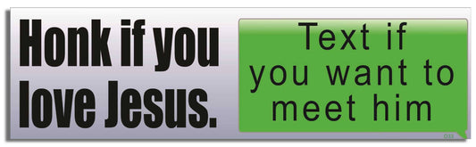 Honk If You Love Jesus. Text If You Want To Meet Him - Funny Bumper Sticker