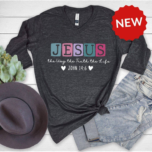 Jesus John 14:6 3/4 Sleeve V-Neck