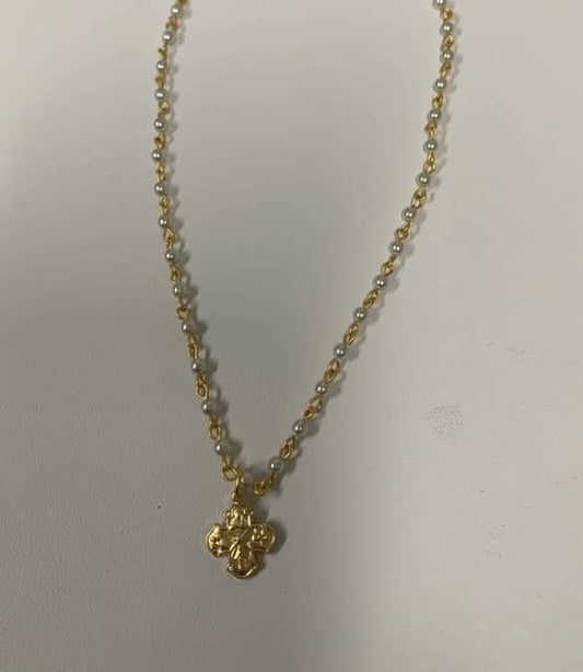 N102MARY2 CLASS PEARL 2MM ROSARY CHAIN MARY NECKLACE