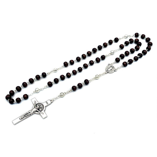 Rosary Brown Wooden Beads St Benedict