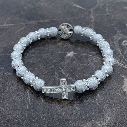 Rosary Bracelet Sparkling Silver Finish Beads Miracle Medal