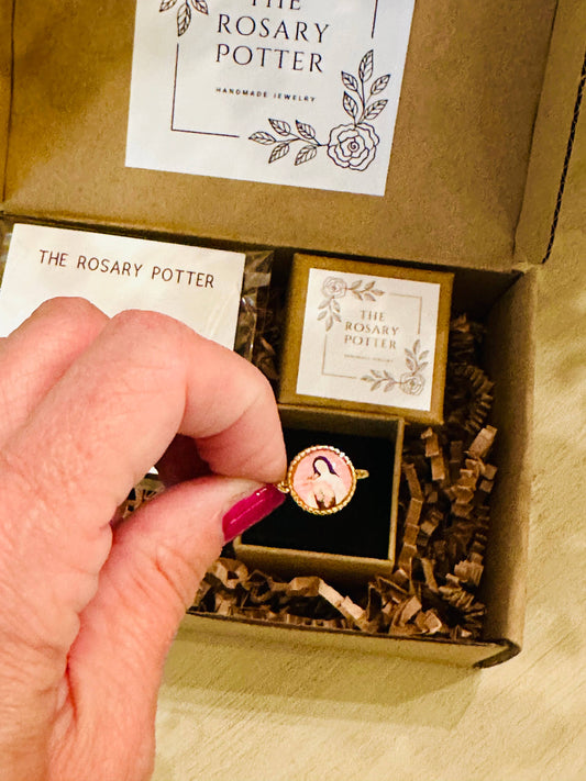 Saint Therese of Lisieux Handmade Catholic Polymer Clay Ring