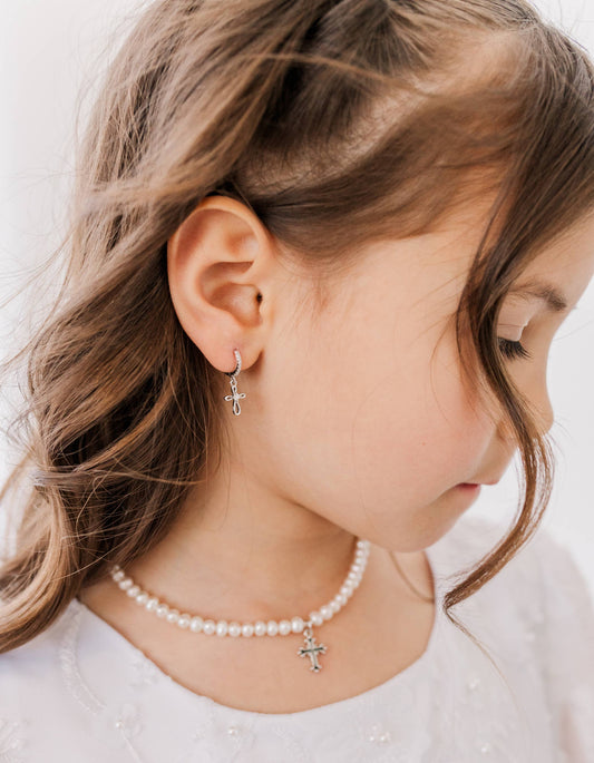 Sterling Silver Pearl Cross Baptism/First Communion Earrings