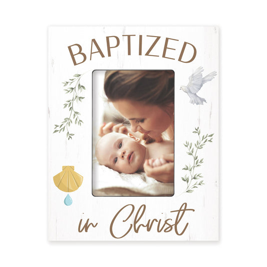 Baptized in Christ frame with shell/cross 4x6 vertical