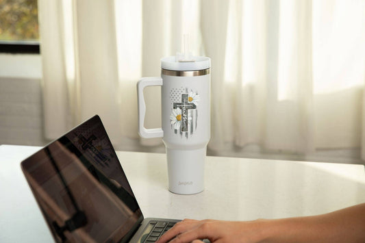 Faith Cross Daisies 40oz Tumbler w/ Handle