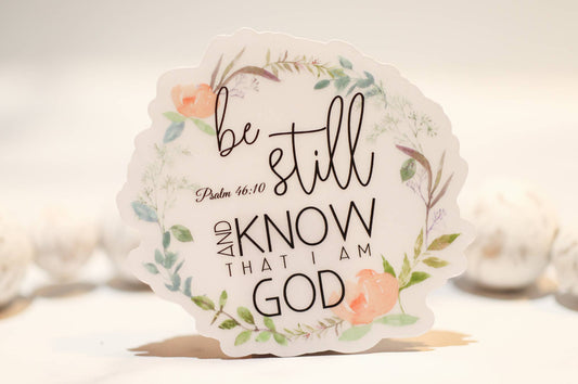 Flourish Be Still Christian Clear, Vinyl Sticker, 3in.