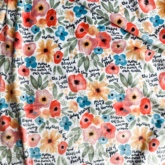 Floral Watercolor Hail Mary Prayer Minky Blanket
