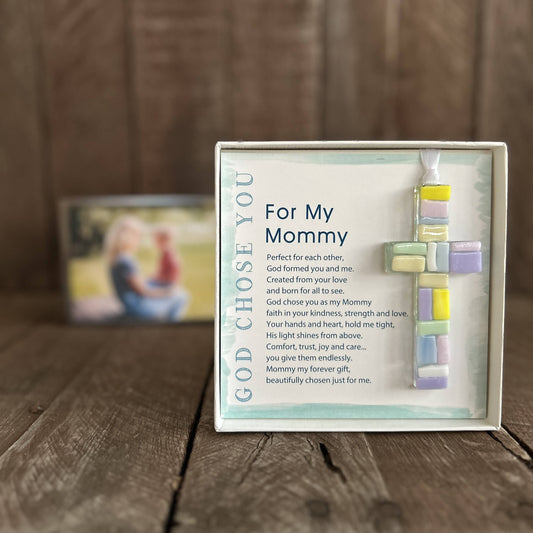 God Chose You Mommy Gift USA Handmade Glass Cross