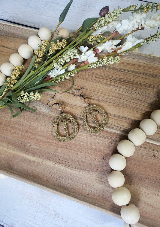 Gold Glitter Circle Cross Earrings