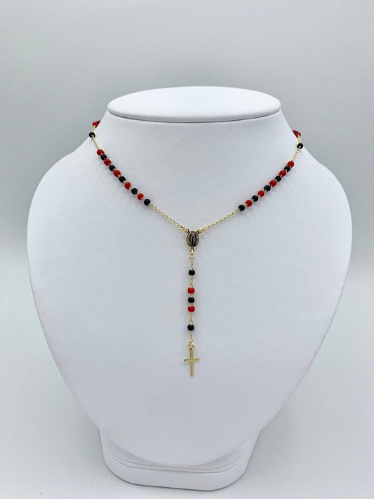 Gold-Plated Tiny Black & Red Beads Our Lady of Grace Necklace 16-inch