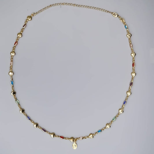 Gold-Plated Multicolor Zirconia Our Lady of Grace Necklace 16-inch