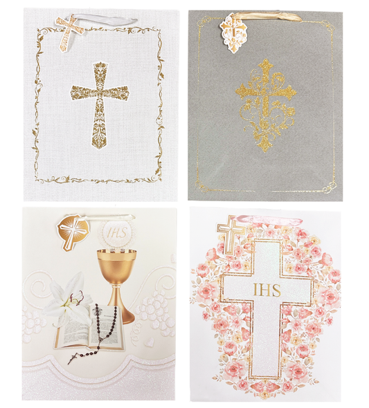 Religious Gift Bag - Cross, glitter accents, assort 4 styles