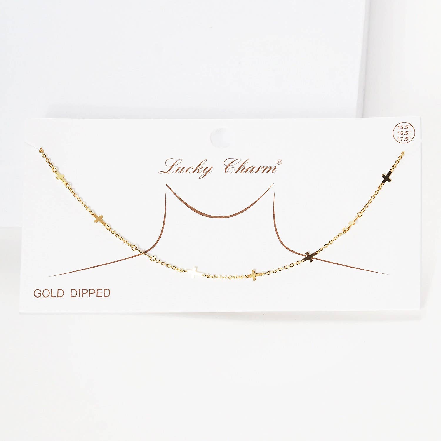 Gold Plated Chain w/ Dangling Crosses Necklace