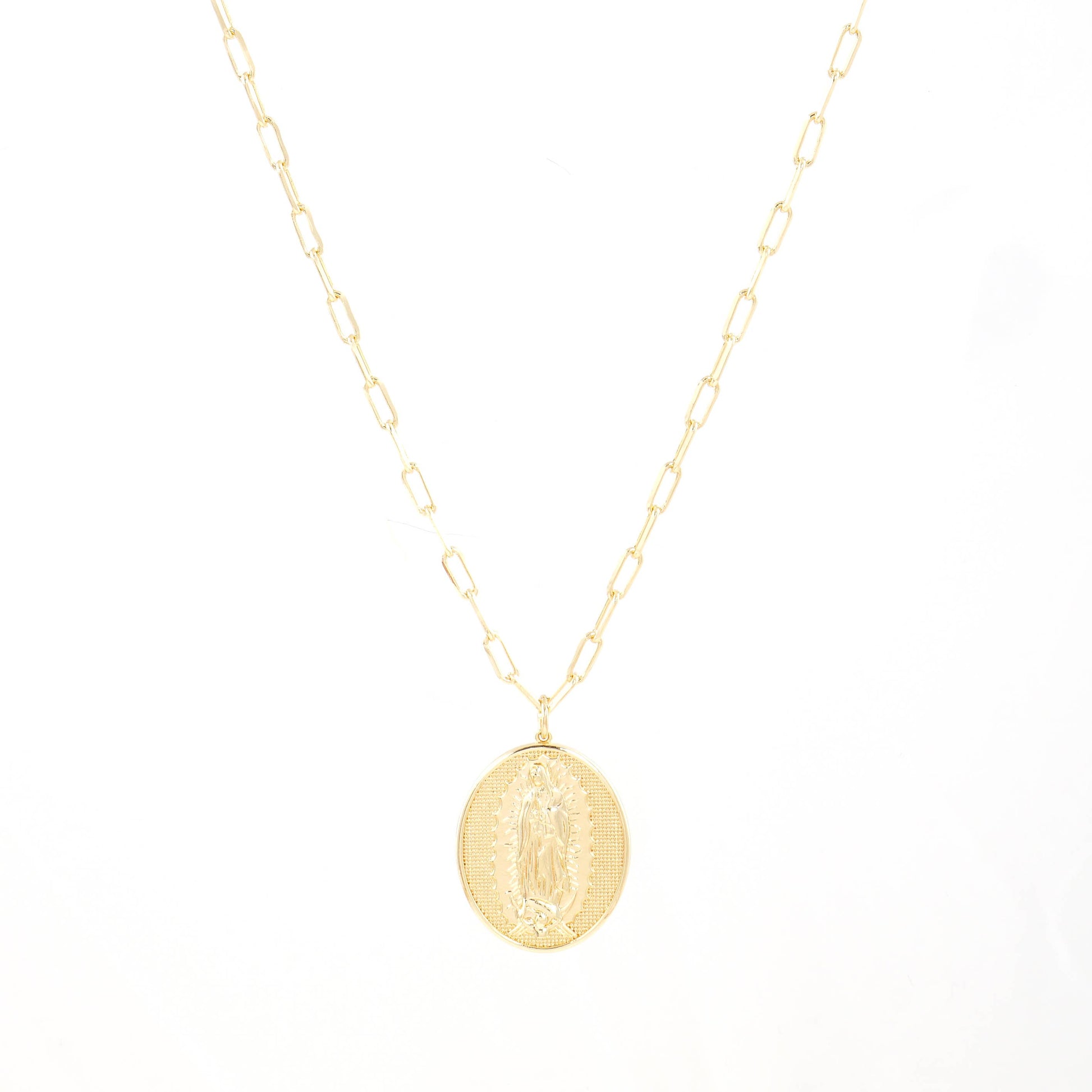 * Gold Plated Virgin Mary Medallion Necklace * - Length: 15.5" - 17.5" (Adjustable) - Materials: Brass, Plated Gold, Plated Silver - Closure: Lobster Claw - Chain Style: Cable - Style: Minimalist - Perfect for Wedding Gift, Birthday Gift and many more! - Your everyday jewelry that you can wear anytime and anywhere! - Made with high quality material to avoid rust or decoloring in our products. * Tip * - Avoid any liquid/chemical substances to prevent your jewelry to lose color and cause any rust on the jewelry. - When cleaning, be delicate and avoid doing any scrubbing to the jewelry which will lead it to losing its color quicker. - Keep your jewelry in a fabric-lines jewelry case, or in a box with compartments and dividers to avoid the jewelry from chipping or damaged.
