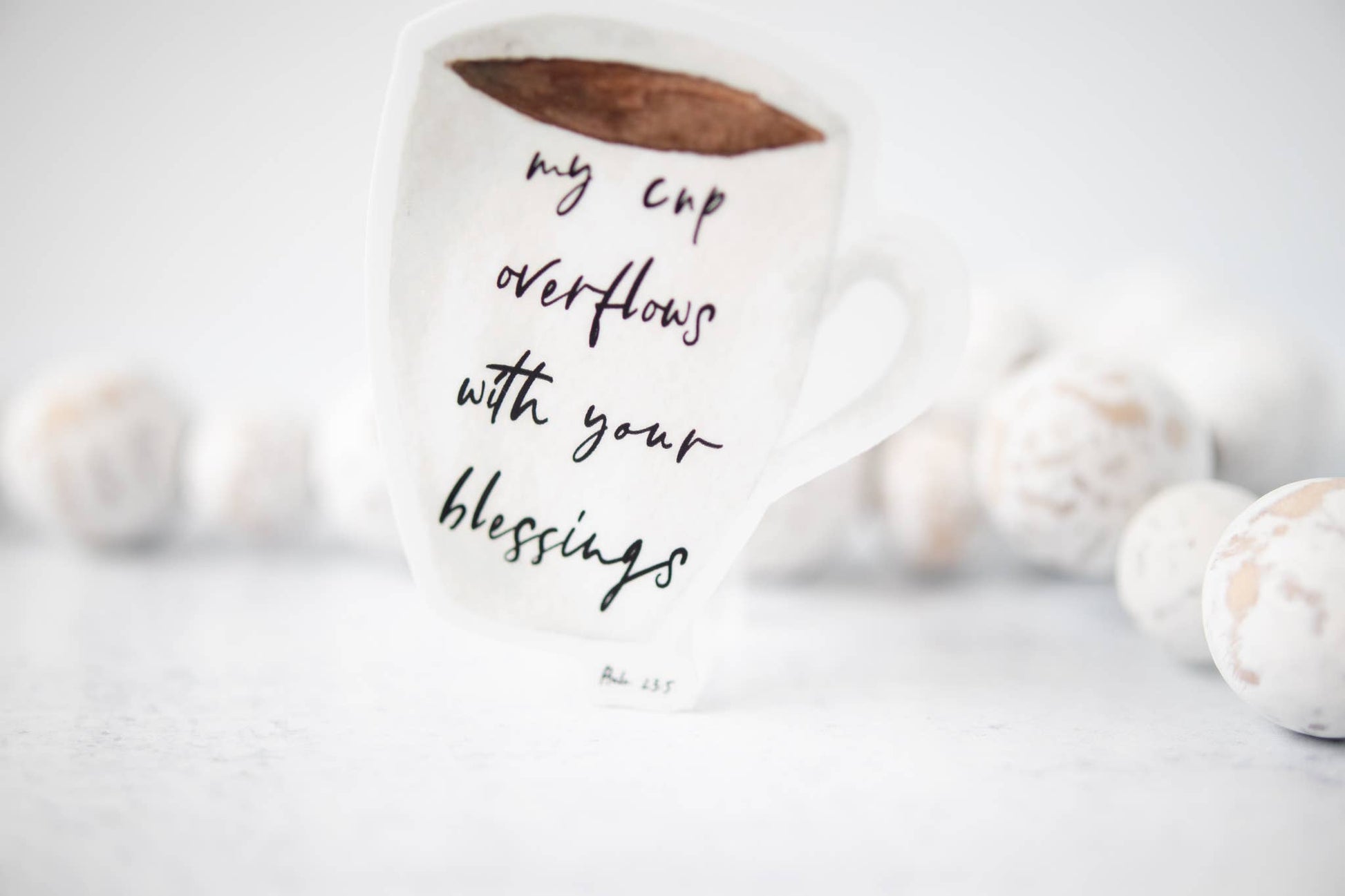 My Cup Overflows With Your Blessings, Vinyl Sticker, 3x3 in