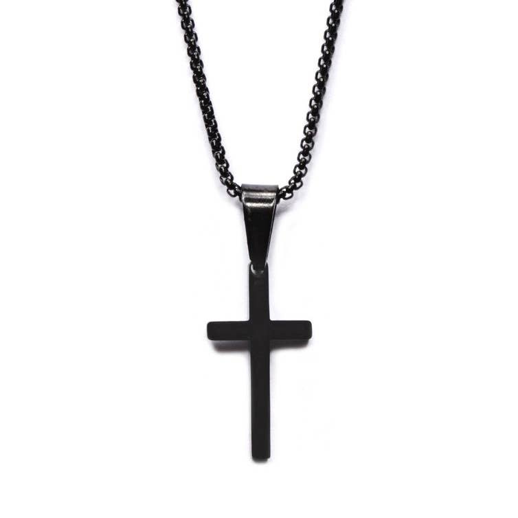 Stainless Steel Cross Necklace for Men with black powder coating.